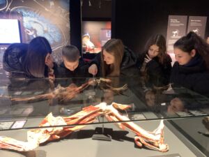 Klassenvorständin und Biologielehrerin Sandra Steiner, Herr Fachlehrer Matthias Daxböck und Biologielehrerin Marlene Pedrazza besuchten gemeinsam mit den Klassen 3A, 3B und 4A am 16.12.2025 die Körperwelten Ausstellung in Wien und ermöglichten den Schülerinnen und Schülern einen außergewöhnlichen Blick unter die Haut des Menschen. Anhand echter Präparate wurde anschaulich dargestellt wie Organe, Muskeln und das Nervensystem zusammenwirken. Besonders beeindruckt zeigten sich die Jugendlichen von der Gegenüberstellung gesunder und erkrankter Organe.